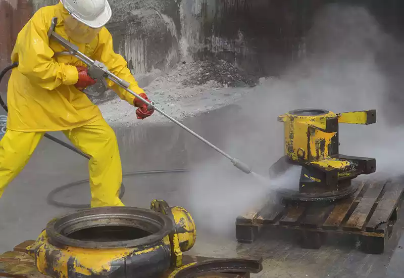 La limpieza y esterilización de los entornos de producción química juegan un papel importante no solo para la seguridad, sino en la eficiencia y eficacia de la producción. Además algunas maquinas pueden usarse para hacer cortes y limpieza de superficies profundas.